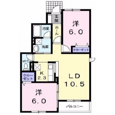 2LDK(54.45m²)└ 1階:D12.8帖 洋室6帖 洋室6帖