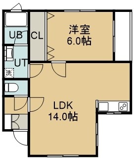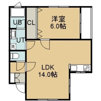 1LDK(47.38m²)└ 2階:LDK14帖 洋室6帖