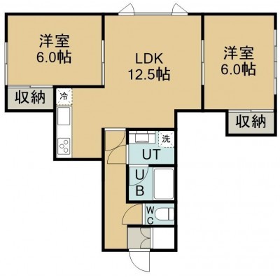 2LDK(56m²)└ 2階:LDK12.5帖 洋室6帖 洋室6帖