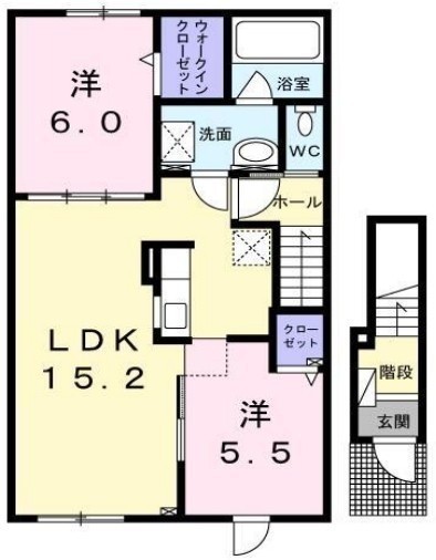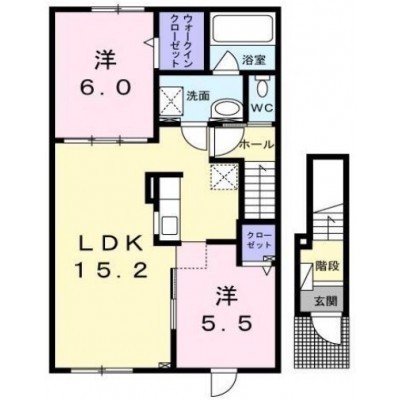 2LDK(62.25m²)└ 2階:LDK15.2帖 洋室6帖 洋室5.5帖