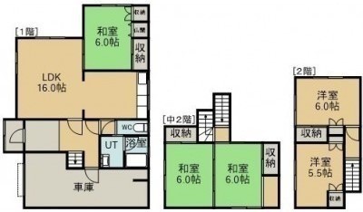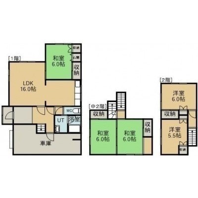 5LDK(130m²)└ 1階:LDK16帖 和室6帖 / 2階:和室6帖 和室6帖 洋室6帖 洋室5.5帖