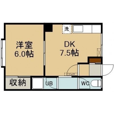 1DK(26.45m²)└ 1階:DK7.5帖 洋室6帖