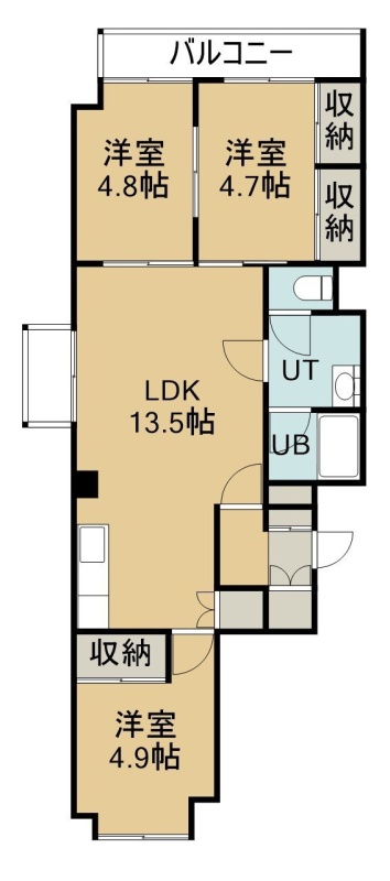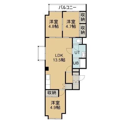 3LDK(69.88m²)└ 5階:LDK13.5帖 洋室4.9帖 洋室4.8帖 洋室4.7帖
