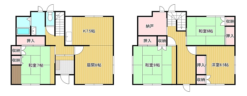 4LDK(120.48m²)└ 1階:LDK15.5帖 和室7帖 / 2階:和室9帖 和室6帖 洋室6.5帖