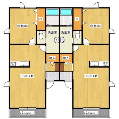 1LDK(45.13m²)└ 1階:LDK14帖 洋室6帖