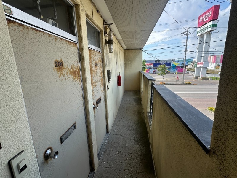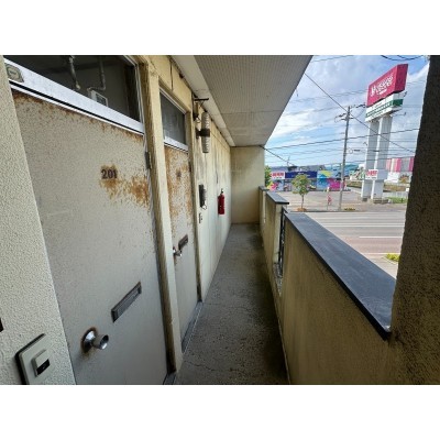 ここに注目!国道沿いの建物です。 駐車場1台込、物置付き、リーズナブルな価格設定です。