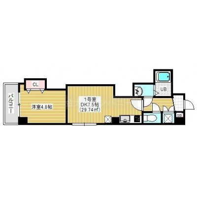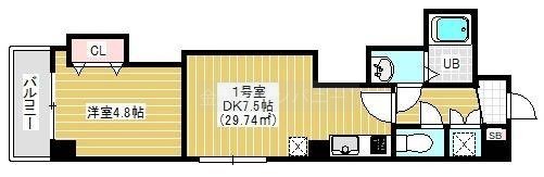 1DK(29.74m²)└ 洋室4.8帖