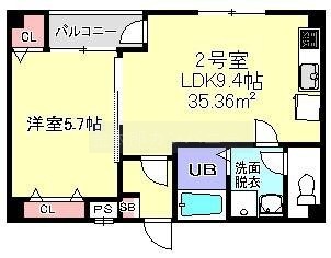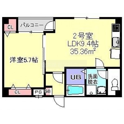 1LDK(35.36m²)└ 洋室5.7帖 LDK9.4帖