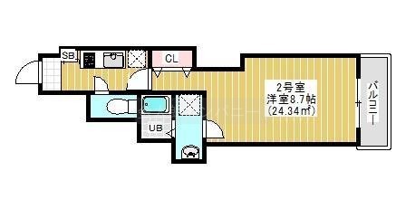 1K(24.34m²)└ 洋室8.7帖