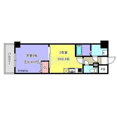 1DK(28.95m²)└ 洋室6帖 DK6.4帖