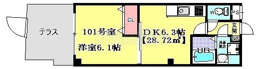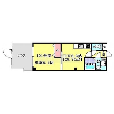 1DK(28.72m²)└ 洋室6.1帖