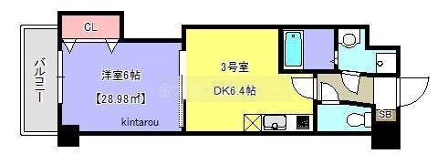 1DK(28.98m²)└ DK6.4帖 洋室6帖
