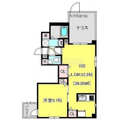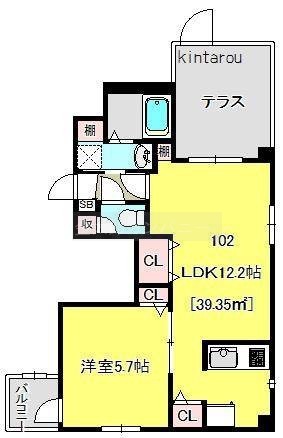 1LDK(39.35m²)└ 洋室5.7帖 LDK12.2帖