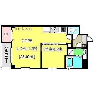 1LDK(36.4m²)└ 洋室4.5帖 LDK11.7帖
