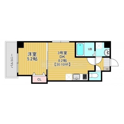 1DK(30.1m²)└ 洋室5.2帖 DK8.2帖