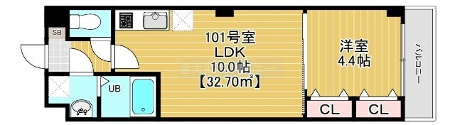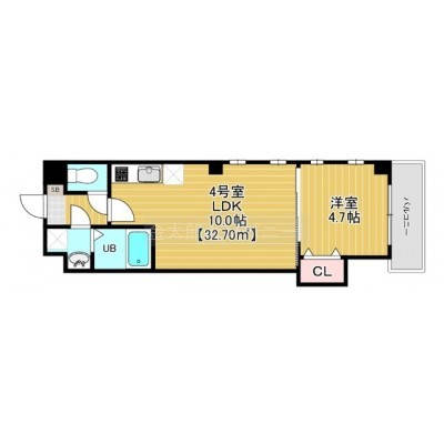 1LDK(32.7m²)└ 洋室4.7帖 LDK10帖