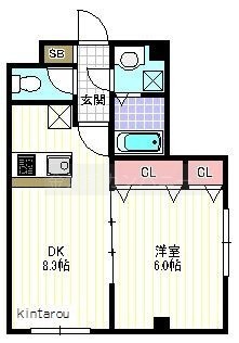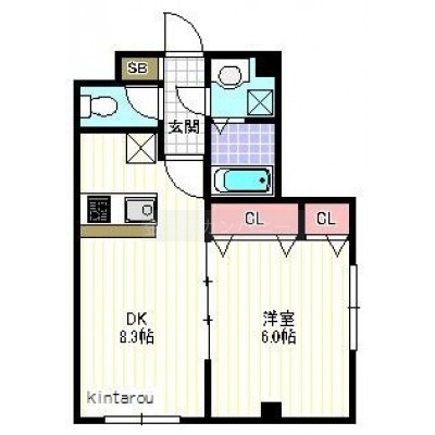 1DK(34.03m²)└ DK8.3帖 洋室6帖