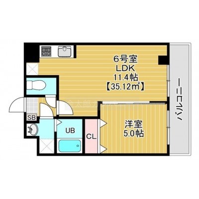 1LDK(35.12m²)└ LDK11.4帖 洋室5帖