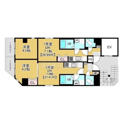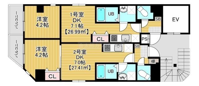 1DK(26.99m²)└ 洋室4.2帖