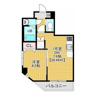 1DK(26.44m²)└ DK7.6帖 洋室4.2帖