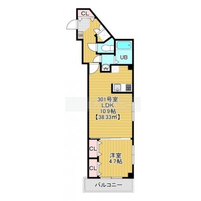 1LDK(38.33m²)└ LDK10.9帖 洋室4.7帖