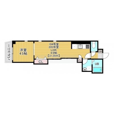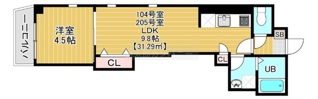 1LDK(31.29m²)└ LDK9.8帖 洋室4.5帖