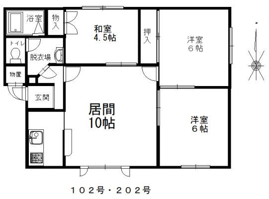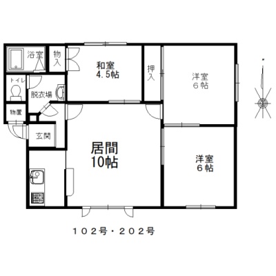3LDK(62.21m²)└ LD10帖 洋室6帖 洋室6帖 和室4.5帖 K2.3帖