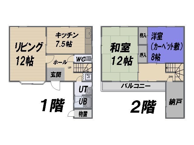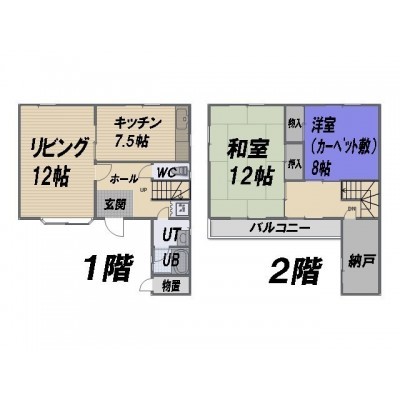 2SLDK(94.23m²)└ 1階:LD12帖 K7.5帖 / 2階:和室12帖 洋室8帖 / その他:S4帖