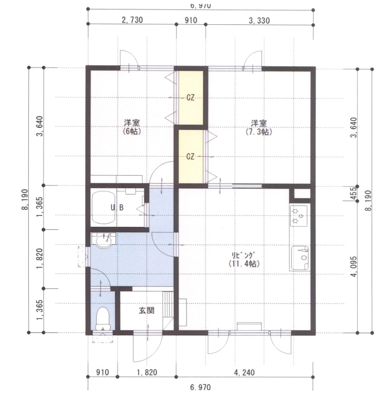 2DK(64.82m²)└ 2階:LDK11.4帖 洋室7.3帖 洋室6帖
