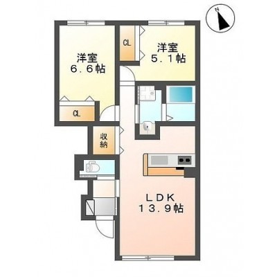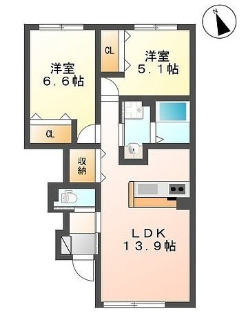 2LDK(57.16m²)└ LDK13.9帖 洋室6.6帖 洋室5.1帖