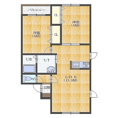 2LDK└ LDK13.5帖 洋室6帖 洋室6帖
