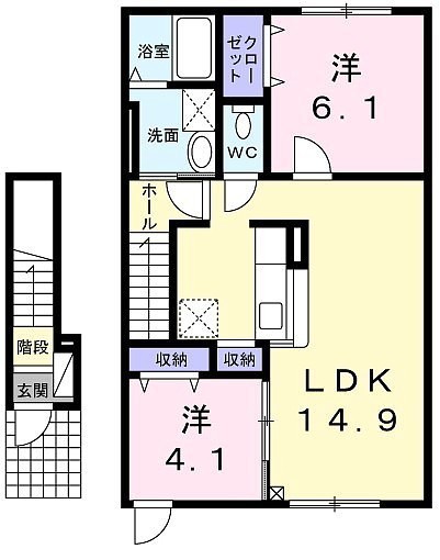 2LDK(58.87m²)└ LDK14.9帖 洋室6.1帖 洋室4.1帖