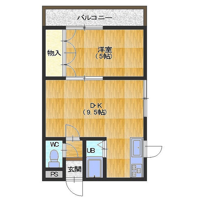 1DK└ DK9.5帖 洋室5帖