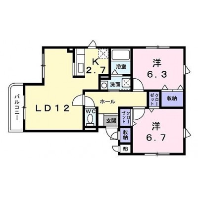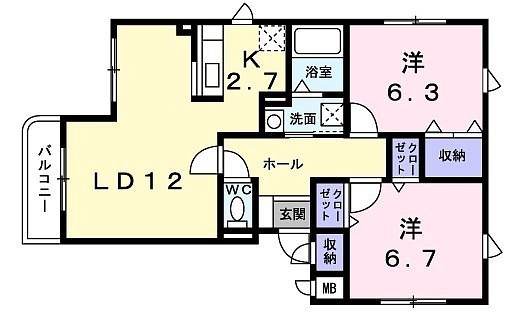 2LDK(62.75m²)└ LDK14.7帖 洋室6.7帖 洋室6.3帖