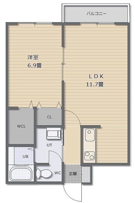 1LDK(43.4m²)└ LDK11.7帖 洋室6.9帖