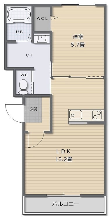 1LDK(43.94m²)└ LDK13.2帖 洋室5.7帖