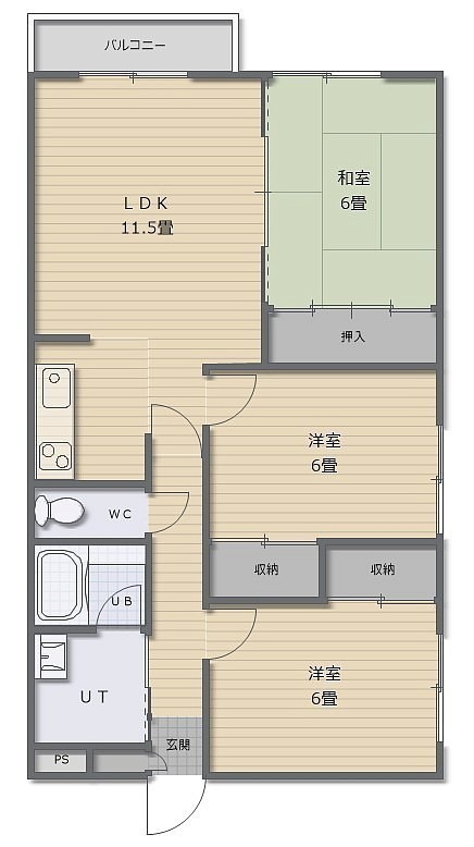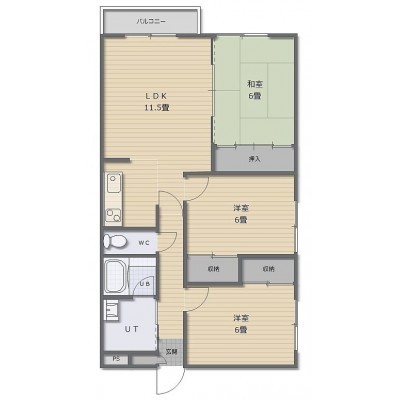 3LDK(67.9m²)└ LDK11.5帖 洋室6帖 洋室6帖 和室6帖