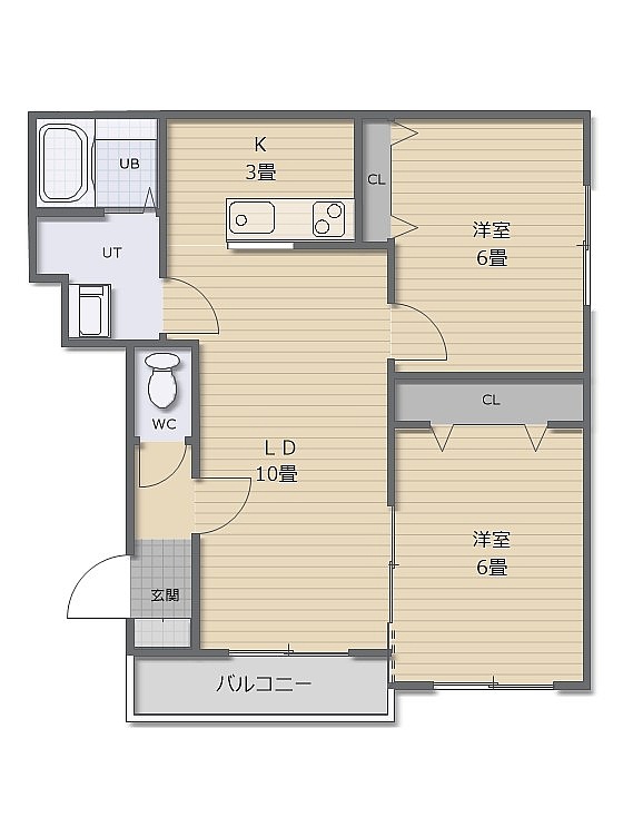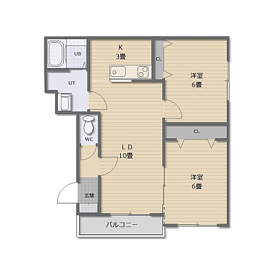 2LDK(54.47m²)└ LDK13帖 洋室6帖 洋室6帖