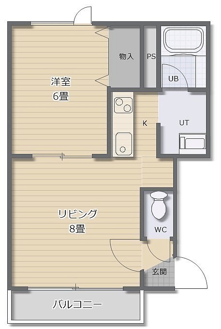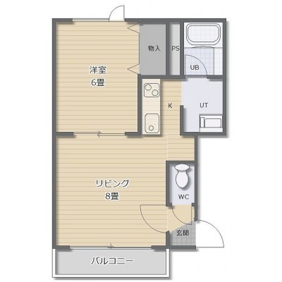 1LDK(36.43m²)└ LD8帖 K 洋室6帖