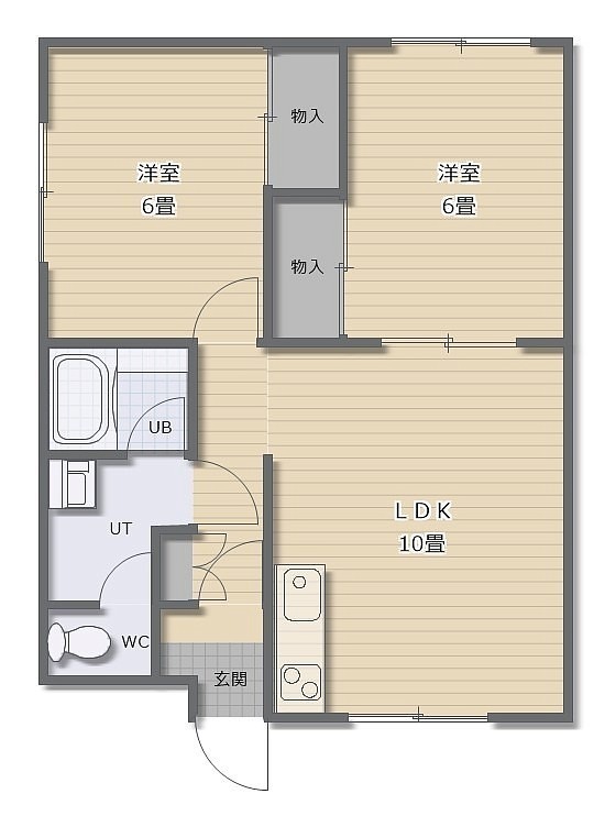 2LDK└ LDK10帖 洋室6帖 洋室6帖
