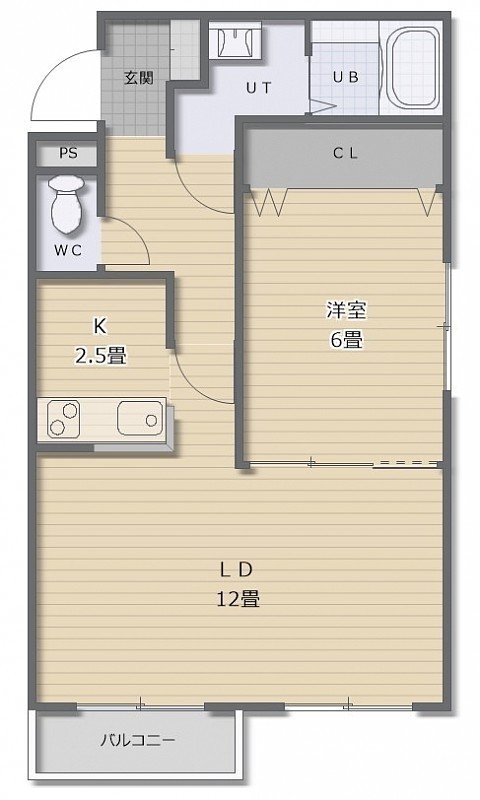 1LDK(48.6m²)└ LD12帖 K2.5帖 洋室6帖