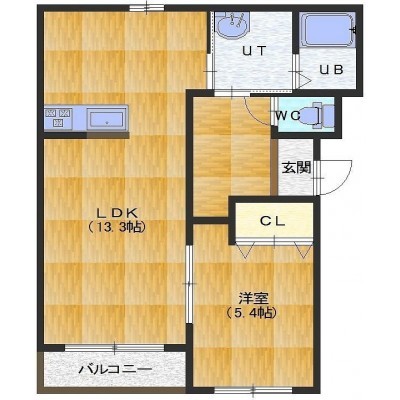 1LDK(45.54m²)└ LDK13.3帖 洋室5.4帖