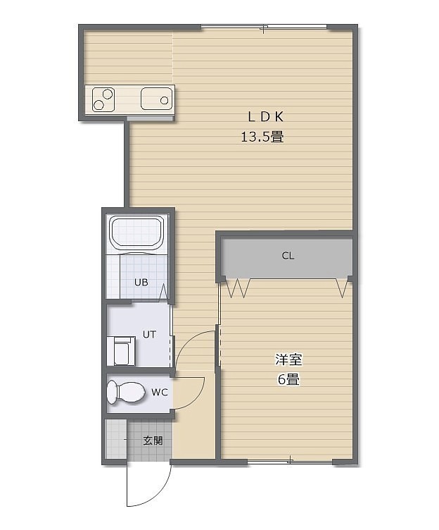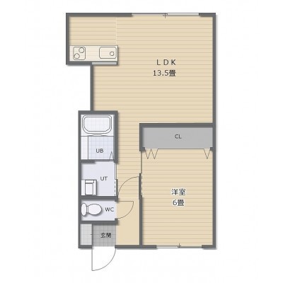 1LDK(45.55m²)└ LDK13.5帖 洋室6帖