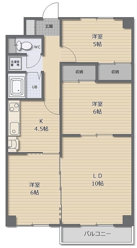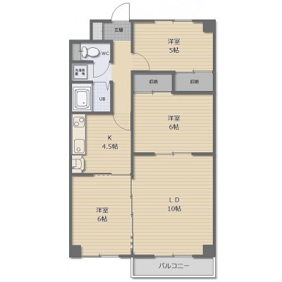 3LDK(70.24m²)└ LD10帖 K4.5帖 洋室6帖 洋室6帖 洋室5帖