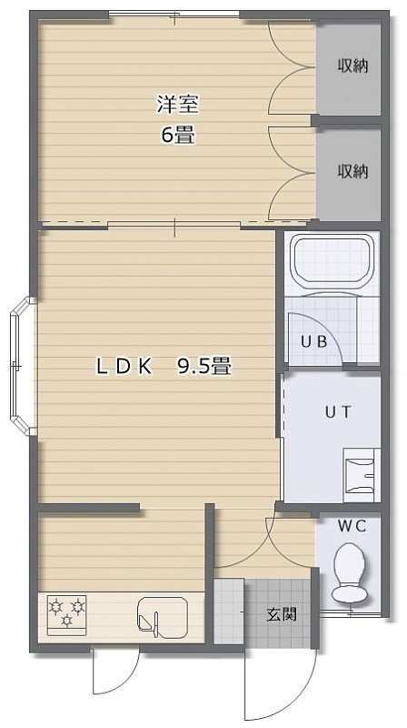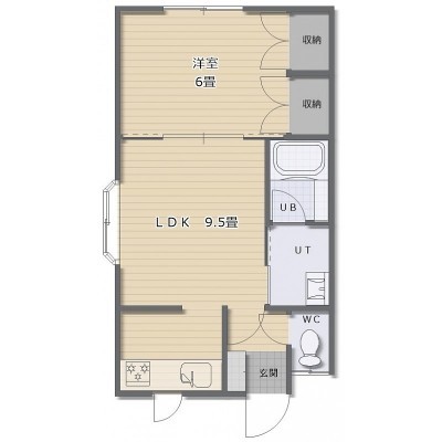 1DK(37.92m²)└ DK9.5帖 洋室6帖