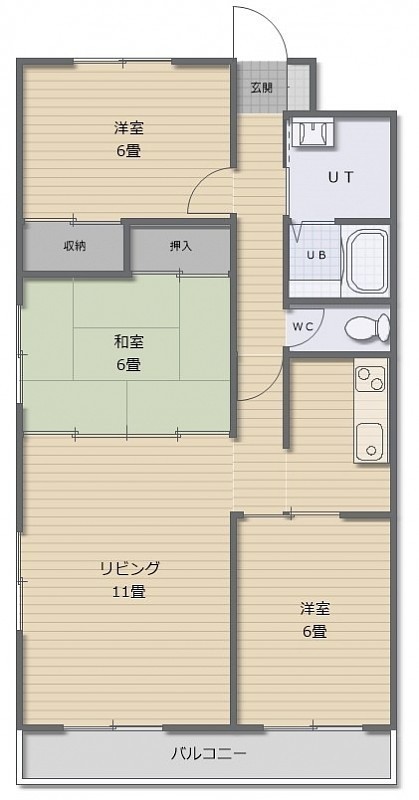 3LDK(75.19m²)└ LD11帖 洋室6帖 洋室6帖 和室6帖