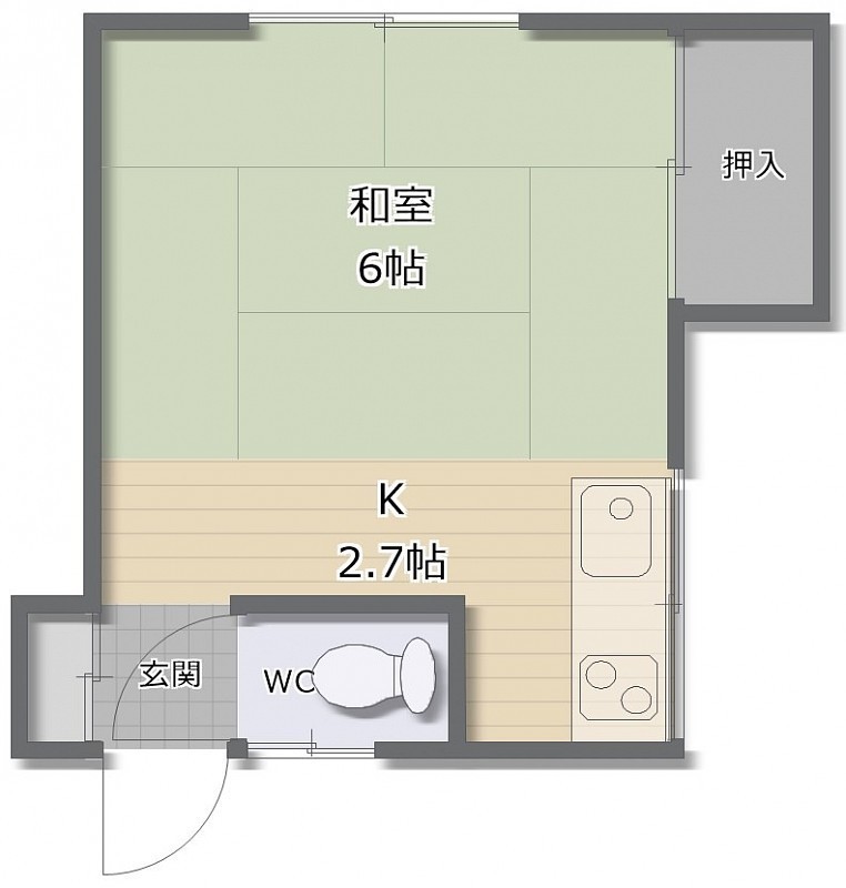 1K(18.83m²)└ K2.7帖 和室6帖
