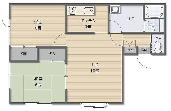 2LDK(40.57m²)└ LD10帖 K3帖 洋室6帖 和室6帖