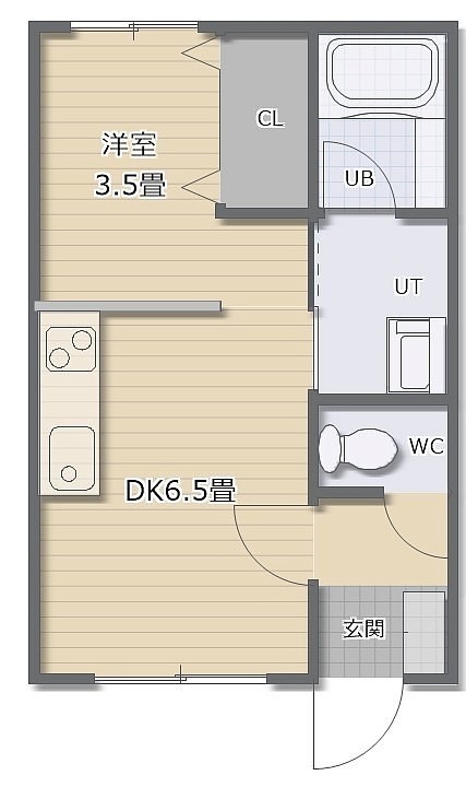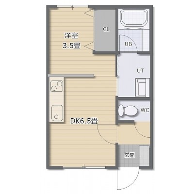 1DK(25.4m²)└ DK6.5帖 洋室3.5帖