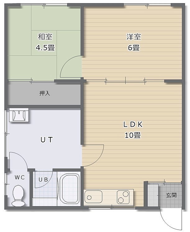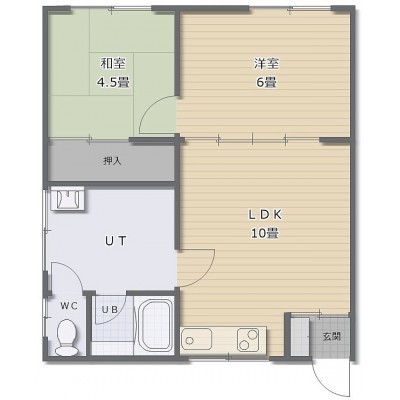 2LDK(42.97m²)└ LDK10帖 洋室6帖 和室4.5帖